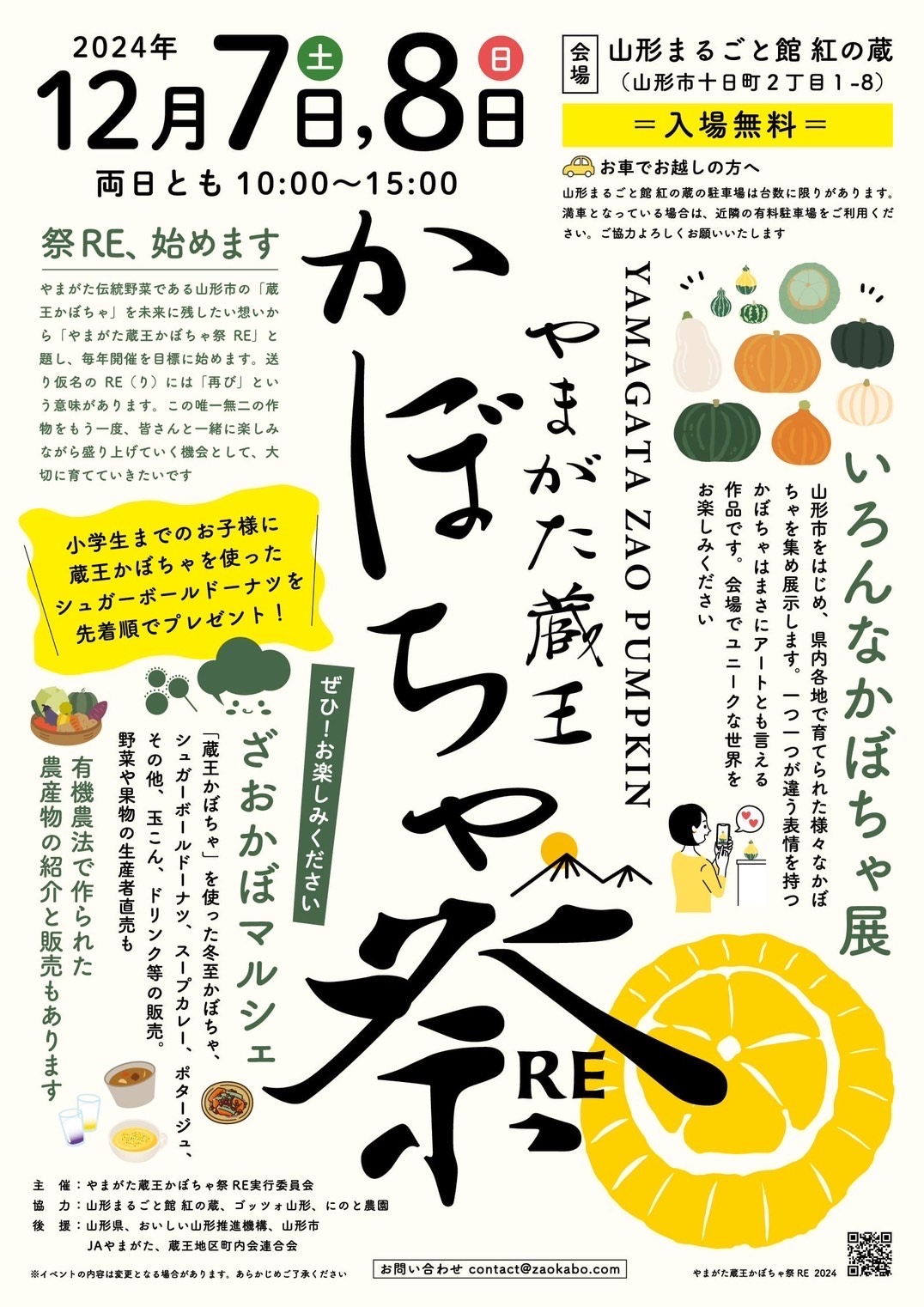 週末の12月7日(土)・8日(日)には「蔵王かぼちゃ祭RE」も開催され、”おいしい企画”が目白押しのイベントになっております。ぜひ皆さま足をお運びください!