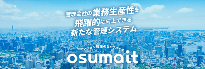 補助金対象のITツールとして認定された「osumait」とは、マンション管理業務を高度にデジタル化する事で生産性を飛躍的に向上させる新たなマンション管理モデルを構築し、人手不足等のあらゆる経営課題に悩む多くの中堅・中小規模のマンション管理事業者向けに提供するサービスです。