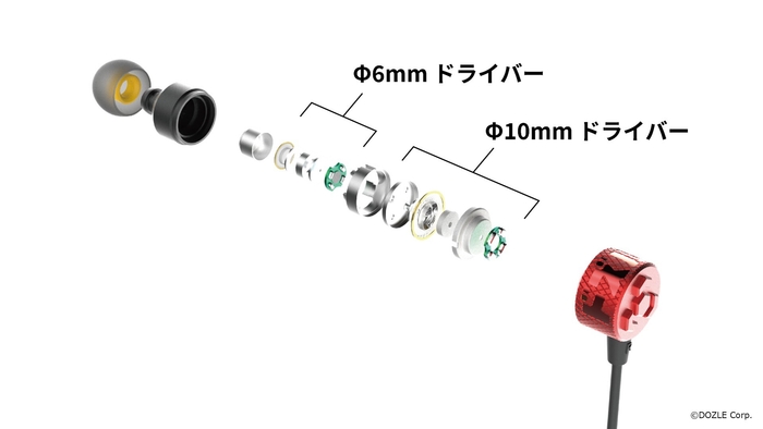 さらに、剛性に優れたアルミニウム製のハウジングには、背面にドズル社のマーク、側面にロゴタイプを刻印。イヤホン全体でドズル社仕様に統一されたデザインをお楽しみいただけます。