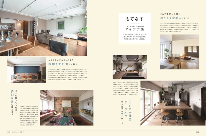 新しく住まいを購入検討している一般の方や、インテリアや建築関係のお仕事に携わる方々に向けた、理想のリビング作りに役立つヒント満載の一冊です。