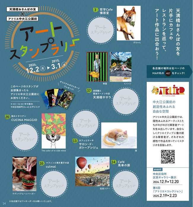 【初コラボ】天満橋おさんぽの友×アトリエ中大江公園前 アートスタンプラリーに参加して、カフェやレストランを巡って、アート作品に出合おう!