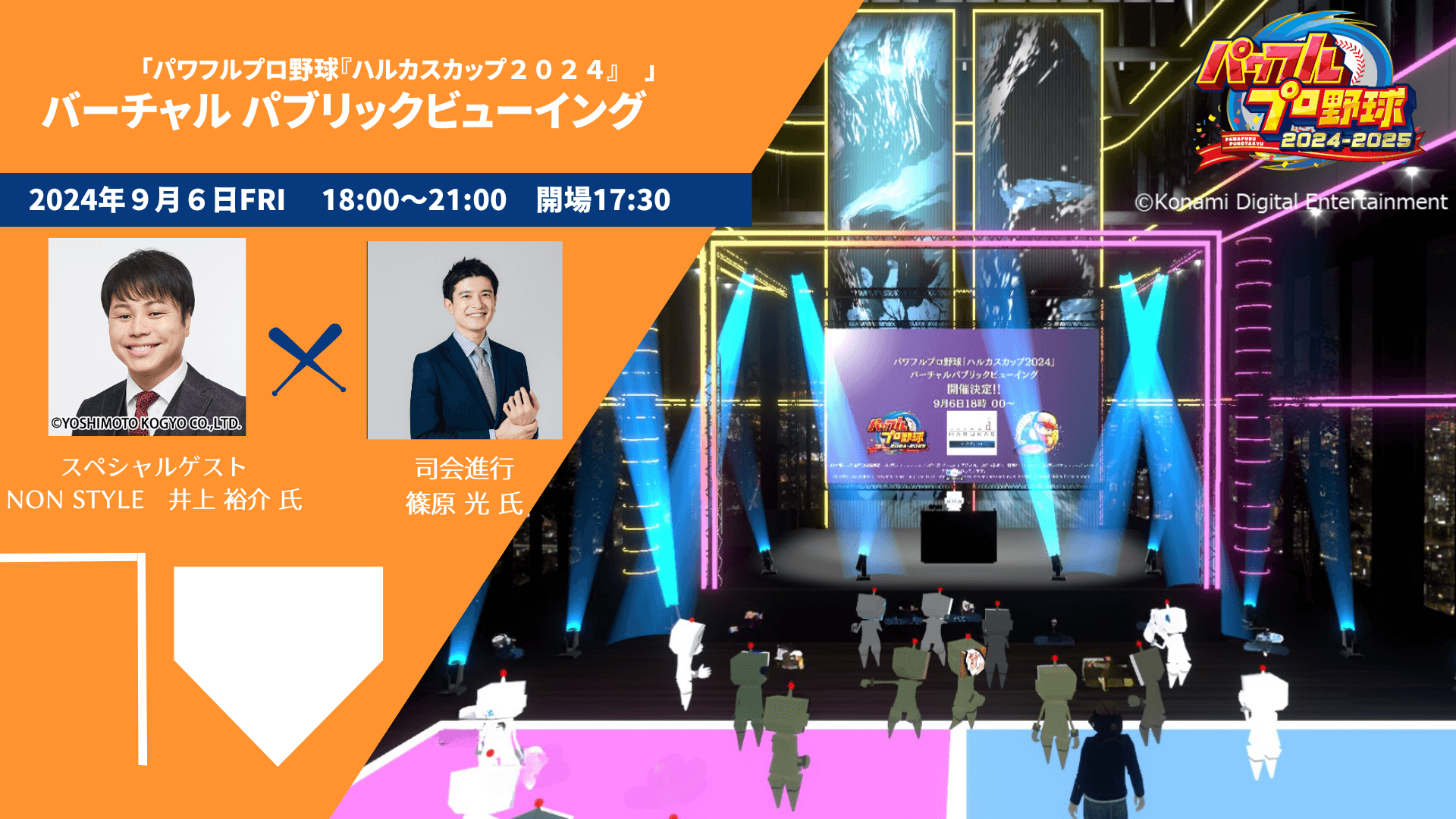 メタバース事業の新たな取り組みとして、あべのハルカスでリアル開催する、あべのハルカス入居テナント様向け大会、「パワフルプロ野球『ハルカスカップ2024』」を、「バーチャルあべのハルカス」展望台エリアにある大型スクリーンを用いて観戦できる、「バーチャル パブリックビューイング」を9月6日(金)18時00分から実施いたします。