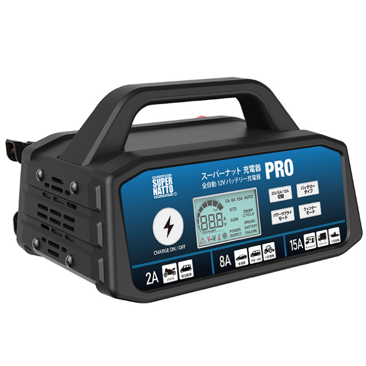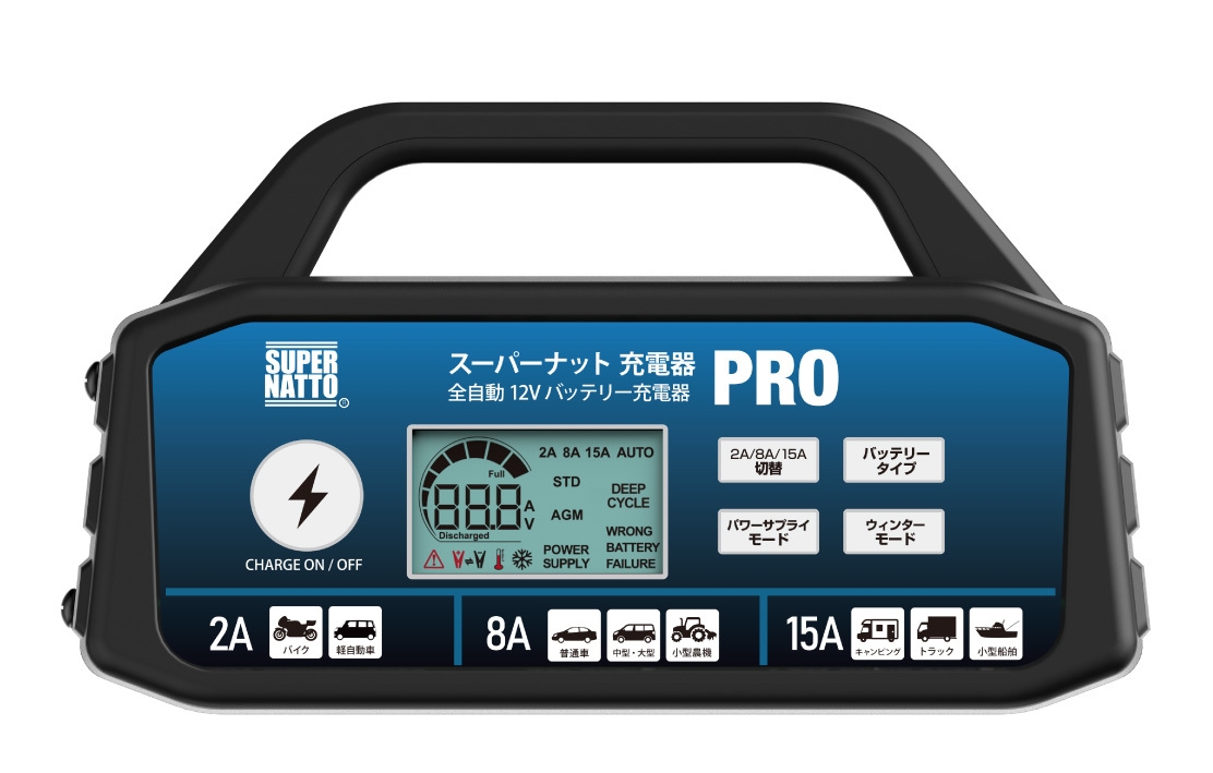 本製品の前身で、小型中型バイクバッテリーの充電ができる「スーパーナット充電器」も累計30万台販売された人気商品です。手軽で使いやすい、機能が多い、充電能力が高い、バッテリーの寿命が延びるという理由で、ユーザーからは「神充電器」と称されています。