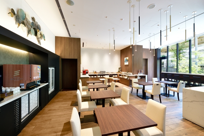 朝は「美味しい朝食はボーダレス!」をテーマとしたバラエティ豊かな朝食ビュッフェを味わえるほか、日中はワークスペース、夜はバーとしてもお楽しみいただけます。