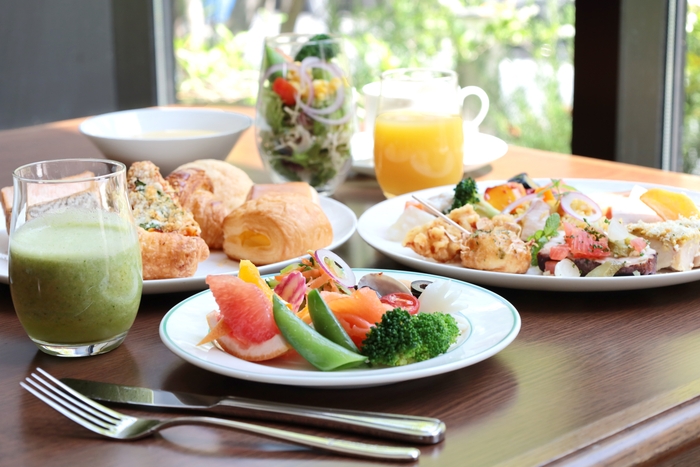フレッシュなサラダメランジェはもちろん、デパ地下のデリ風にアレンジした惣菜サラダが視覚にも鮮やかな朝食の一部となっています。