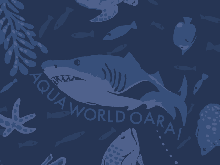 新ユニフォームのブルゾンとパンツには、当館で飼育しているシロワニやカナダカワウソ、フンボルトペンギンなどの生き物たちのイラストが描かれたテキスタイル(生地)を使用しています。海中をイメージした紺色をベースに、のびのびと泳ぐ生き物たちの様子が描き下ろされたオリジナルの図柄です。イラストになっている生き物たちは、実際に館内で観察することができますのでユニフォームとあわせて、ぜひご注目ください。