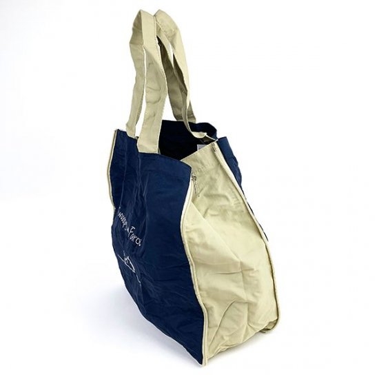 ファスナーを全開するとこの通り、マチたっぷりなエコバッグに変身です♪このサイズで底の部分がスクエア型な物ってあまりないんですよね。入れた時の安定感があるので、とってもオススメです。