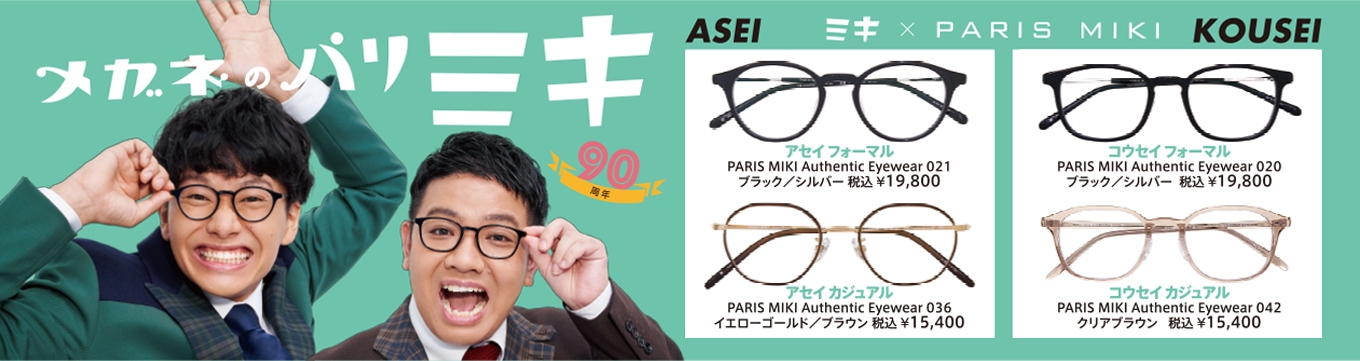 兄弟漫才師「ミキ」と共同開発『ミキコラボレーションモデル』メガネ発売中!コラボから動画撮影風景まで、詳細は特設ページにて公開しております。