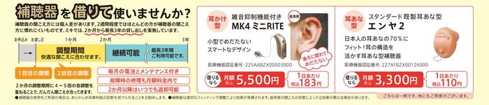 月額税込3,300円~ 定額にて補聴器を貸し出しいたします。使えるようになるか不安な方は、まずは補聴器を借りることから始めてみませんか?