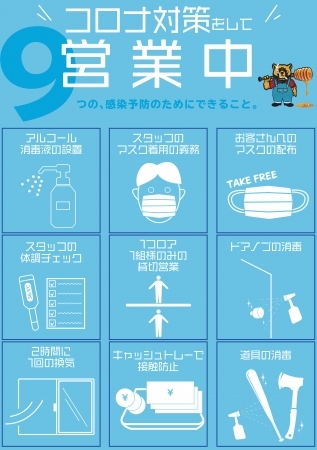 新店舗である池袋店では、各フロア1組のみの利用に制限し、定期的な換気と消毒を行っております。