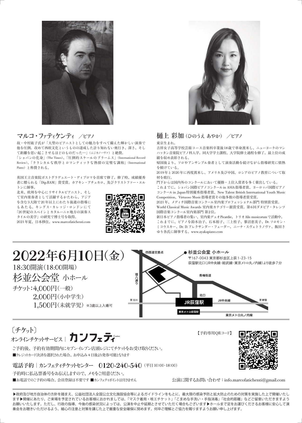 マルコ・ファティケンティ(pf) / 樋上彩加(pf)