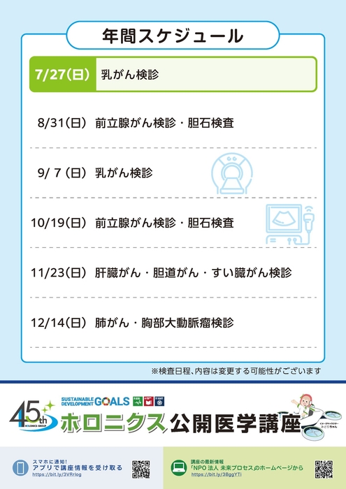本イベントは、ホロニクスグループで医療啓発活動を推進するNPO法人未来プロセスの活動に医誠会国際総合病院が賛同し協力開催するものです。NPO法人からの補助を活用した費用で各種検診を受診していただけることも、より幅広い方々への機会提供となるものと考えています。乳がん検診は今回を含め、あと2回の開催予定です。「週末検診」を利用して、休日の静かな病院で待ち時間なく受診していただけます。ぜひこの機会をご活用ください。