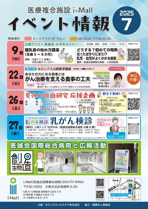 また、医療法人医誠会が運営する医療複合施設「i-Mall」では、健康の維持・増進に役立つ様々なイベントを企画・開催しています。