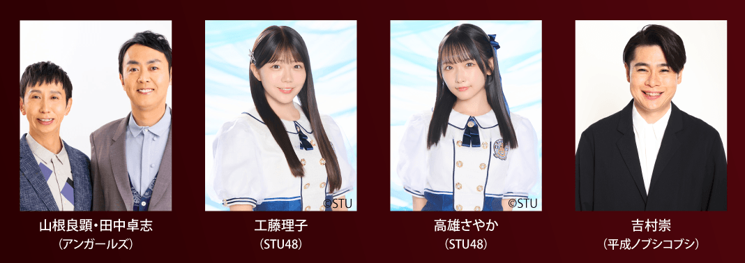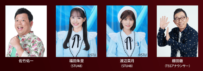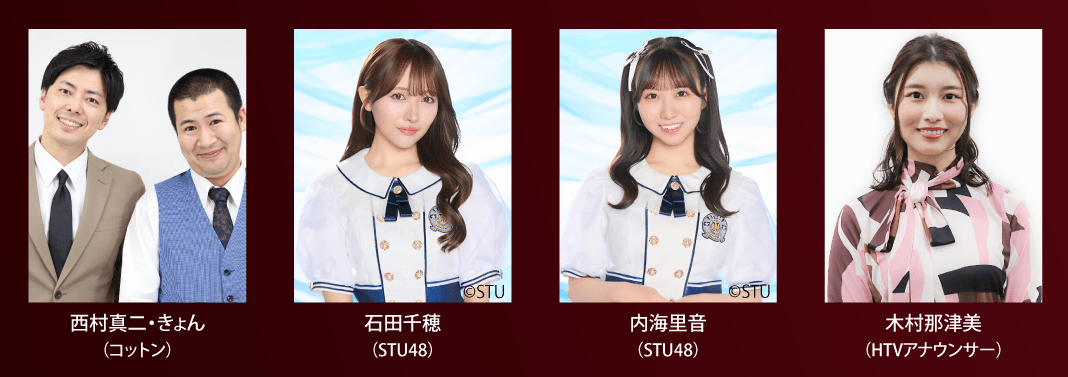 究極のお土産『王土産』の開発めざし、力を発揮してくれそうな出演者と広島の人気店にオファーをして、独自の新商品を開発。瀬戸内7県を拠点に活動するアイドルグループ「STU48」を中心に、広島にゆかりのあるタレント・芸人・著名人など各局多彩な顔触れが勢ぞろいします。はたしてどんな新しい広島土産が誕生するのか?!