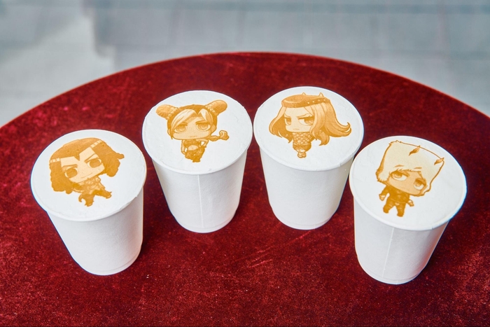 さらに、東京ミステリーサーカスでの公演期間中、1F「HIMITSU COFFEE」にてオリジナルカフェメニューも販売いたします。コースターも付属する「カフェラテアート」は、空条徐倫、E・コステロ、ウェザー・R、ナルシソ・Aの4種類をご用意。カフェラテアートの絵柄はお好きなキャラクターをお選びいただくことが可能です。さらに「ナルシソ・Aのミックスベリーフロート」や「ウェザー・Rのふわふわコットンキャンディソーダ」など、キャラクターをイメージした見た目にも楽しめるドリンクにもご注目。