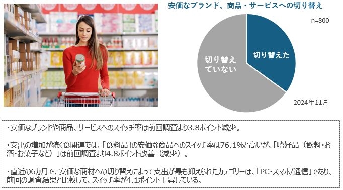 ■安価な商材へのスイッチ率は直近6カ月で減少するも、PC・スマホ/通信では増加傾向に