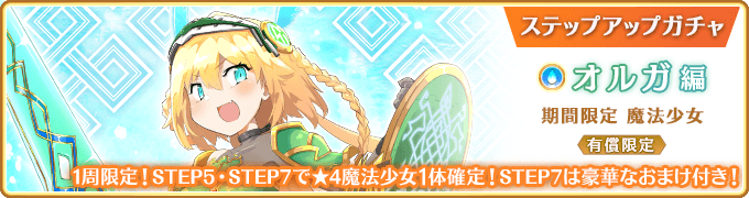 ※『有償限定 ステップアップガチャ オルガ編』の★4魔法少女確定までのカウントは『期間限定 オルガ ピックアップガチャ』とは異なります。