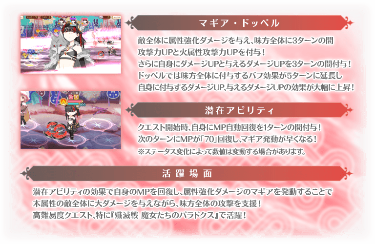 ・魔法少女やメモリアのスキル内容・効果は事前告知の上、変更する場合があります。