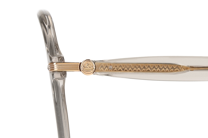 動きも表情も豊かなウッドストックが、テンプル(つる)に総柄でデザインされたウェリントンモデル。ペナントをかたどったメタルパーツもポイントです。