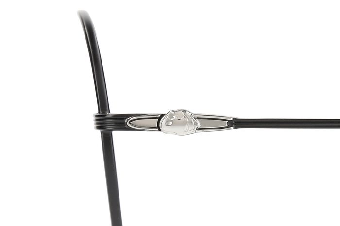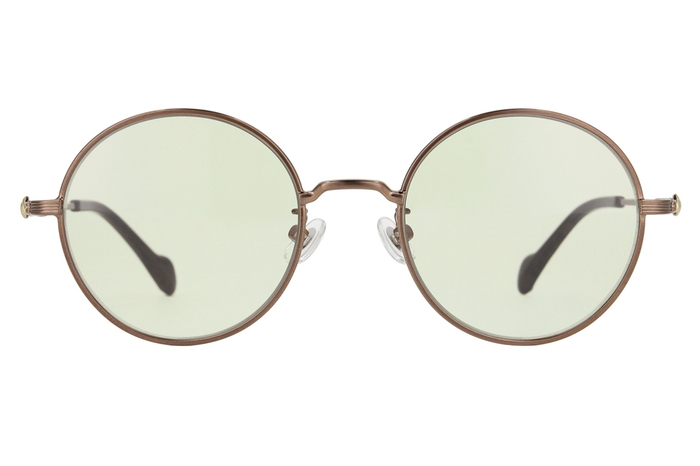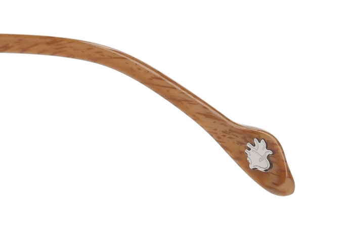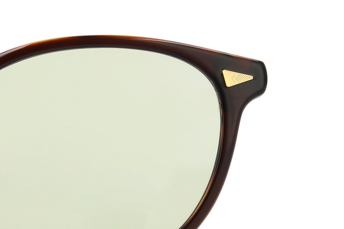 ペナントをかたどったメタルパーツに、カレッジ⾵ロゴのテンプル(つる)の先にパーツが付いた顔なじみの良いボストンモデル。