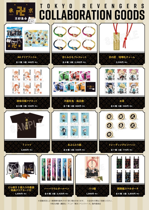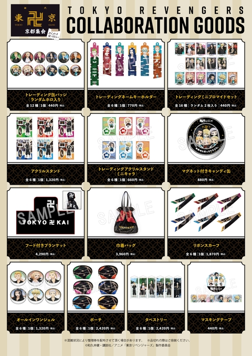 今回のイベントの開催に合わせて缶バッジ等のオリジナルグッズのほか、京都の伝統工芸とのコラボグッズを販売いたします。イベント会場で税込2,000円ご購入ごとに、ランダムで名刺風カード(全12種・ランダムで1枚)をプレゼント!
