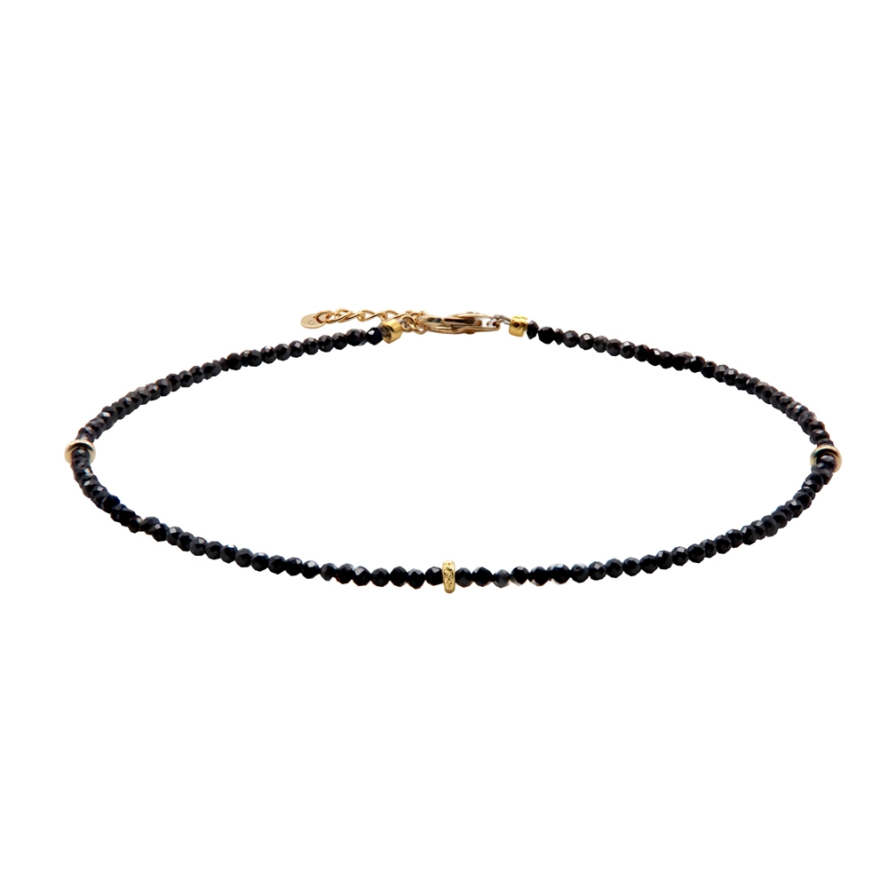 無限の可能性を引き出すといわれるブラックスピネルと古代エジプト王朝以前より存在していたといわれるアンクレット。スピネルとイエローゴールドの艶やかな煌めきが足元を華やかに彩ります。ラグジュアリーでコーディネートしやすい程よいボリュームのアンクレットです。