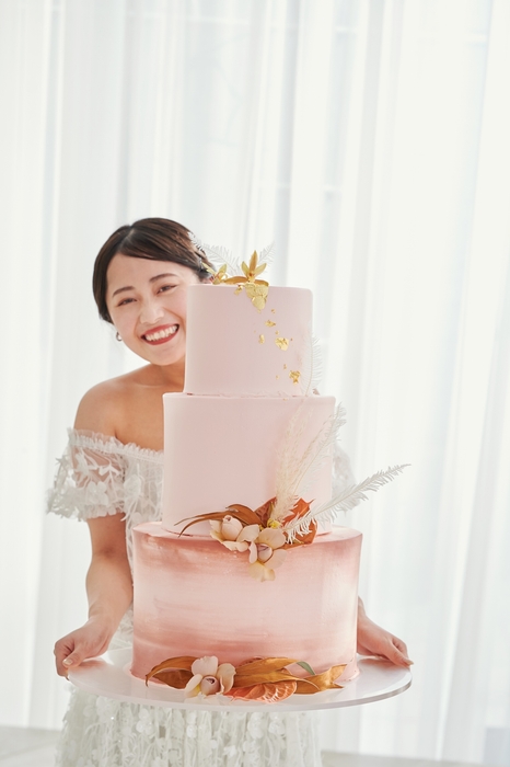 ベストブライダル公式インスタグラム(@bestbridal.jp)のアンケートで第1位を獲得したデザインを商品化したケーキ。