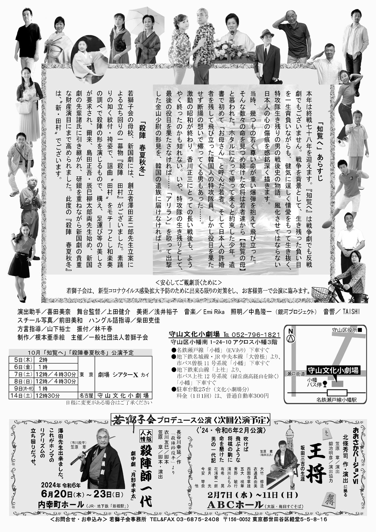 若獅子会プロデュース公演『知覧へ』『殺陣 春夏秋冬』