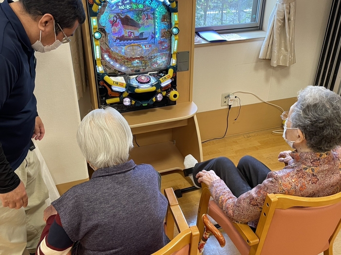 また、静音化や誤飲防止、安全設計、移設のしやすさといった福祉仕様へのカスタマイズを実施。大当たり時には玉の代わりに「トレパチカード」が出てくるなど、施設での活用を考慮した工夫も施されています。