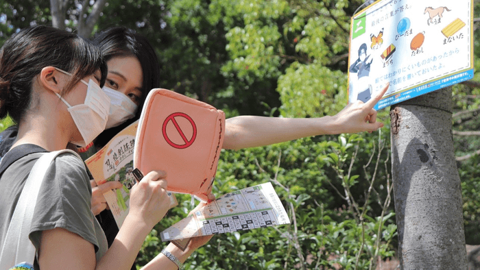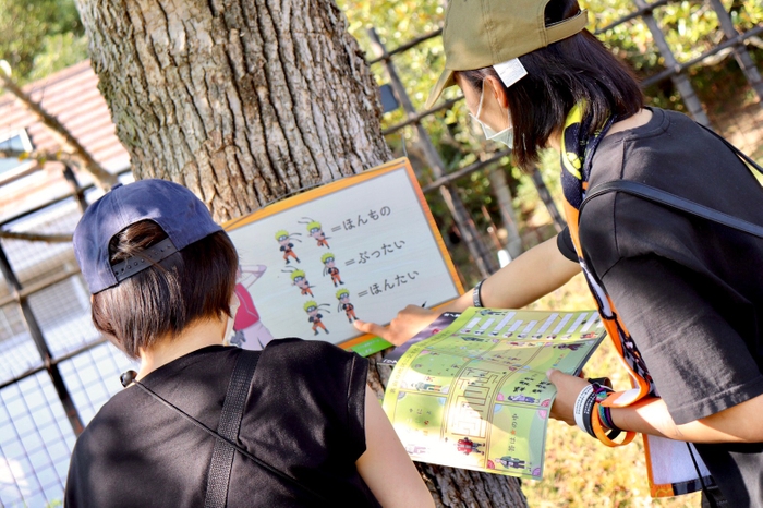 「ニジゲンノモリ」のアトラクションエリア「NARUTO&BORUTO 忍里」内に設置されたパネルに書いてある謎を解く周遊ゲームです。