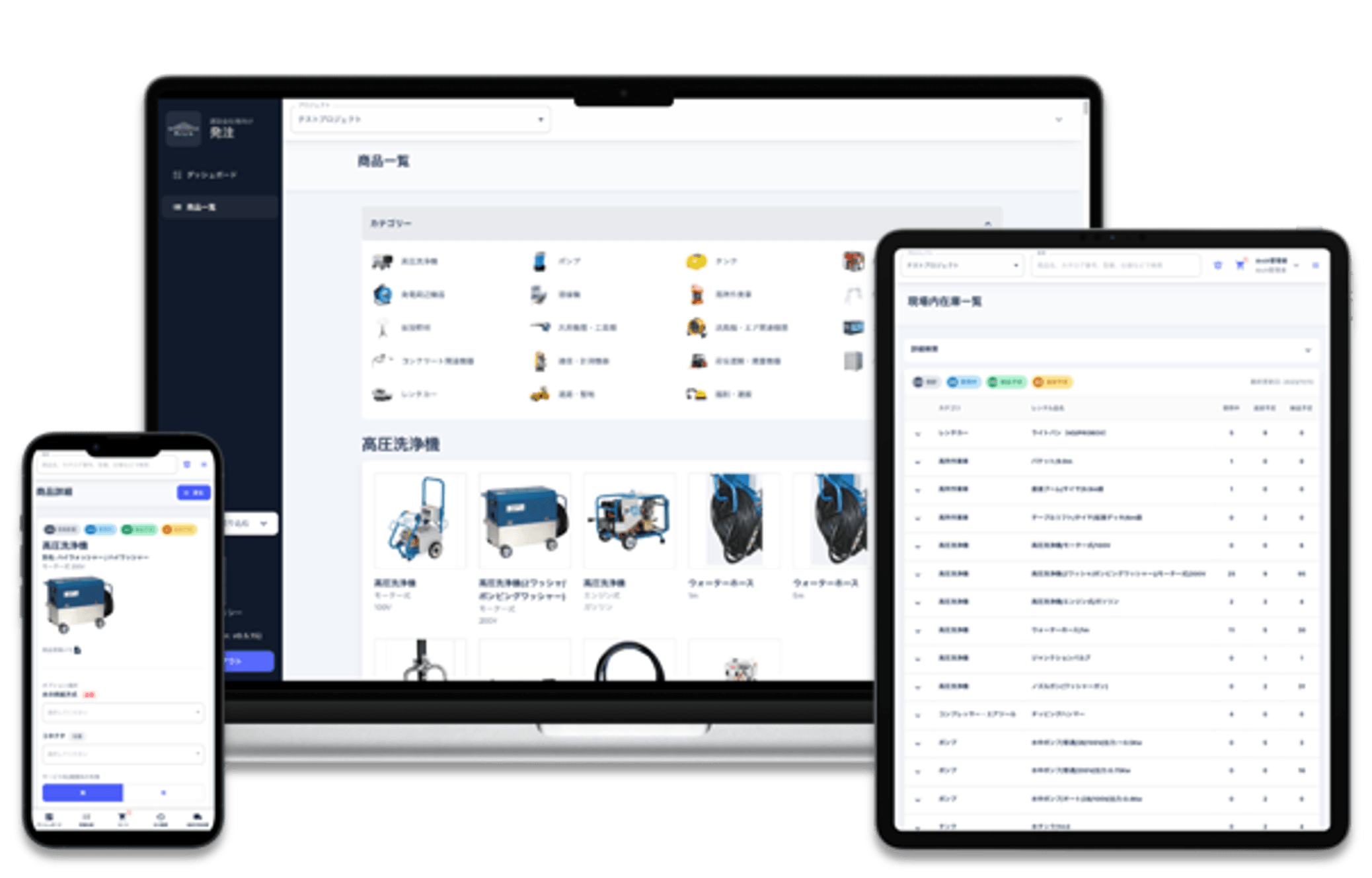 アナログで処理していた建機レンタル品の見積・発注・在庫管理を全てデジタル化し、建設会社と建機レンタル会社双方にデジタル化による業務効率化を提供するクラウド型サービスです。
