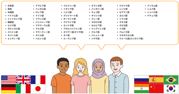 英語・中国語・フランス語などの主要言語をはじめとする59の言語に対応!