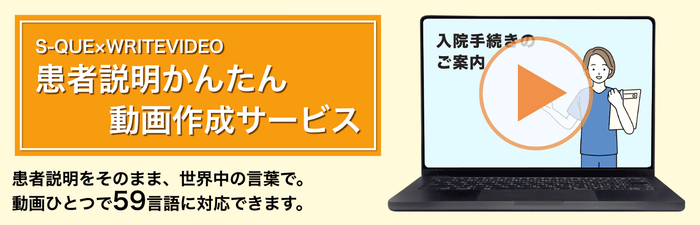 59の言語に自動で翻訳!S-QUE×WRITEVIDEO「患者説明かんたん動画作成サービス」を7月1日に本リリースしました!