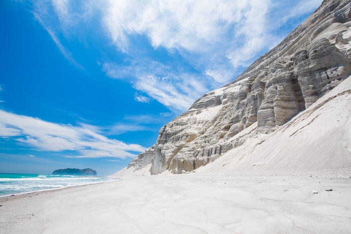 新島は他の伊豆諸島や小笠原諸島の島にはないガラス質を多く含む「抗火石(こうがせき)」を特産品としています。