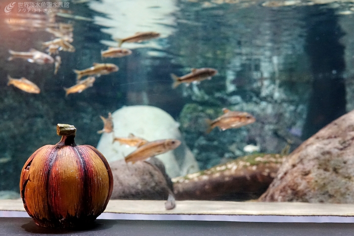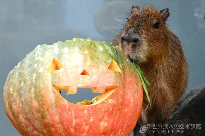お菓子のような魚が泳ぐテーマ水槽や、カピバラへおばけカボチャのプレゼントなど、水族館ならではのハロウィンをお楽しみください。