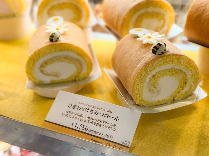 もっちり弾力のあるスポンジで、はちみつの甘みで仕上げた生クリームを巻き上げた「ひまわりはちみつロール」。