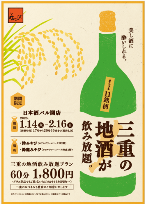 内容:三重県の個性豊かな地酒11種と食材を楽しむ日本酒イベント