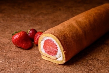 大粒な苺と控えめな甘さの生クリームを包み込んだロールケーキ