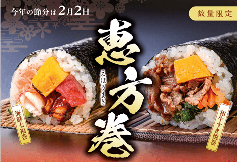 株式会社グリーンズ(本社:三重県四日市市、代表取締役社長:村木雄哉、証券コード:6547)は、運営するレストラン「鈴鹿みやび」「津みやび」、および「伊勢シティホテル」「四日市シティホテルアネックス」にて、節分限定の特製恵方巻「海鮮七福巻」「和牛すき焼巻」「恵方ロール」を販売します。受け渡し日は2025年2月1日(土)・2日(日)、今年の恵方は西南西です。なお、1月15日までにご予約いただくと早期申込割引が適用されます。無病息災や家内安全を願い、ぜひ2025年の福を呼び込む特製恵方巻をお楽しみください。