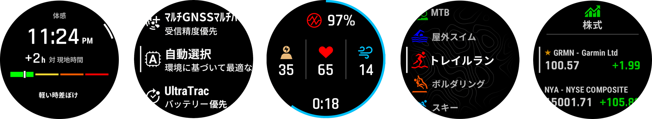 ・ライフログ機能 :心拍数、呼吸数、Body Battery、睡眠スコア、