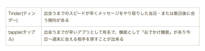 ・男性が多いアプリ → Tinder、tapple (すぐ出会いやすいアプリ)