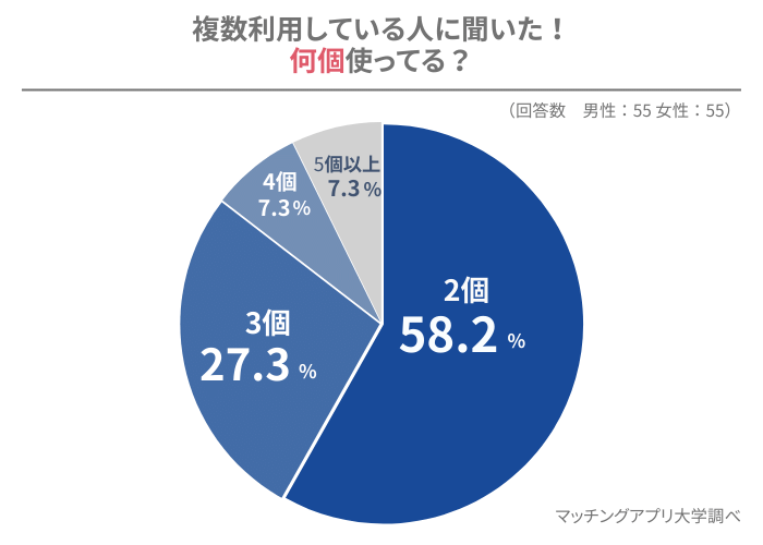 マッチングアプリの利用者はいくつのアプリを併用しているのか調査してみました。