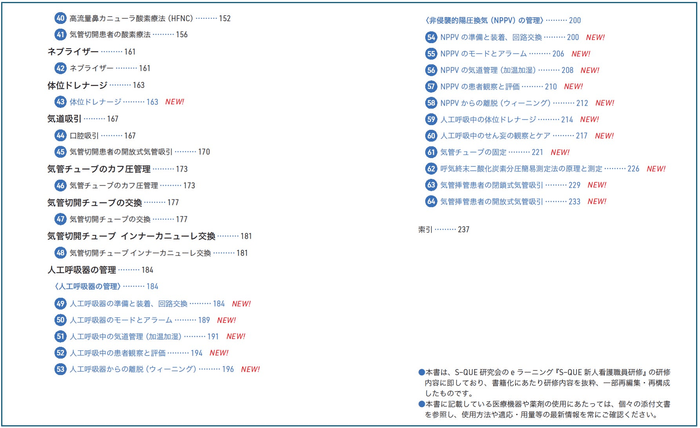 〇本書は「S-QUE新人看護職員研修」eラーニングに対応しており、同eラーニングのテキストとしてご活用いただけます。
