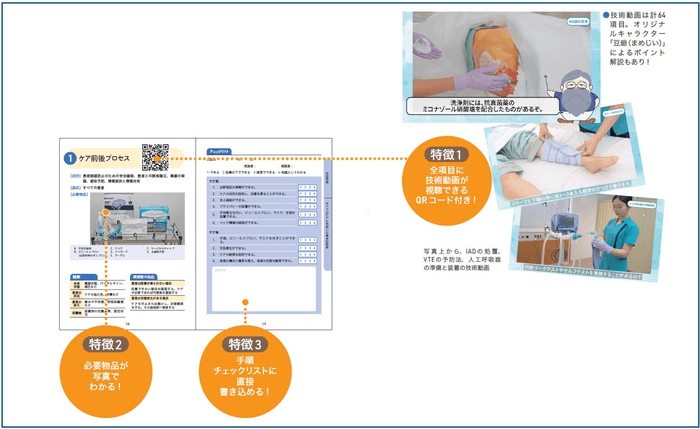 〇各項目の冒頭にあるQRコードから該当の技術動画を視聴できます。また、手順チェックリストには「チェック欄」や「コメント欄」があり、実際に書き込むことができます。