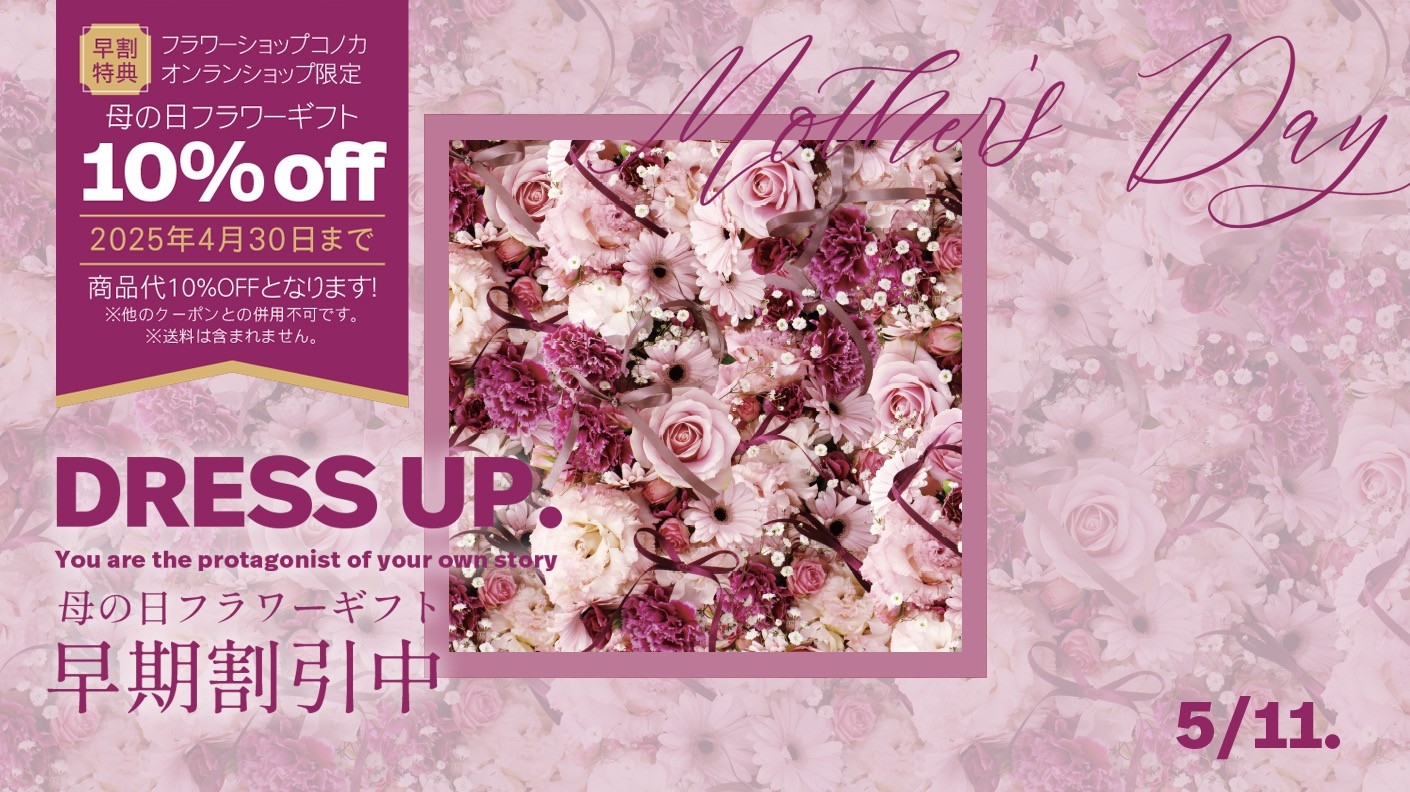 花の総合カンパニー クリエイティブ・フラワー・コーポレーション(株)(本社:大阪府大阪市、代表取締役社長:松村吉章)が展開するフラワーショップブランド『conoka』コノカは、2025年4月1日(火)から母の日限定商品の予約販売を開始致します。