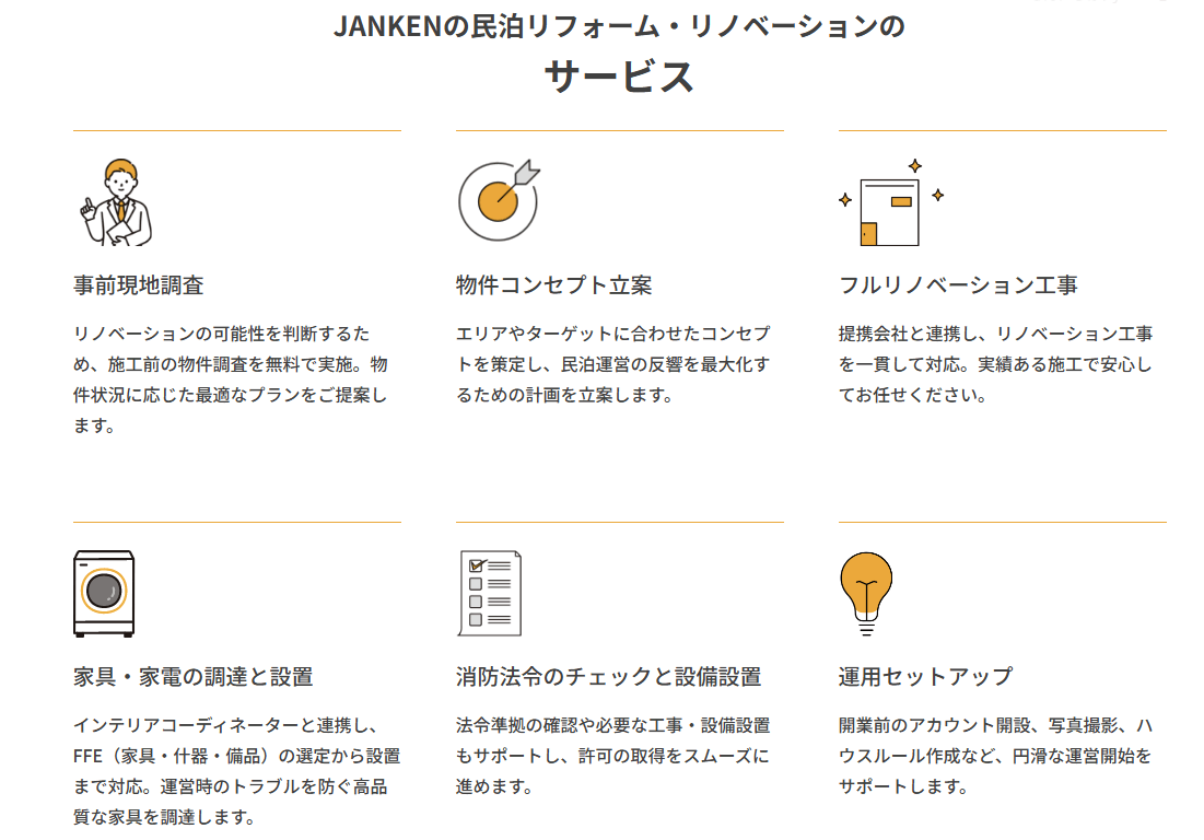 JANKENの民泊リフォーム・リノベーションのサービス内容