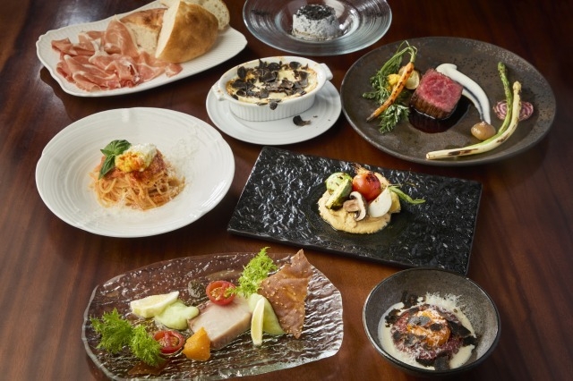 東京のブリアンツァで人気の「TOKYOスペシャリテ トリュフと卵のオーブン焼き」に加え、「OSAKA限定 トリュフと馬肉のタルタル」や炭を活かした料理も取り揃え、イタリア料理の醍醐味をお楽しみいただけます。
