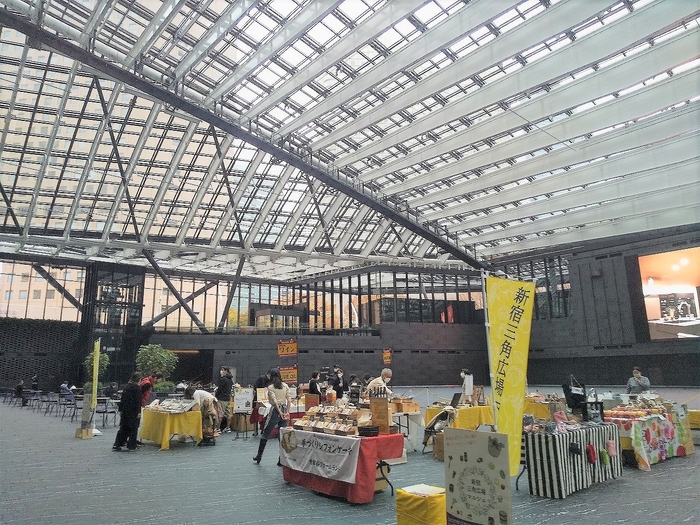 新宿西口の都庁近く、新宿住友ビルのリニューアルされた全天候型イベント広場「三角広場」で開催するマルシェです。