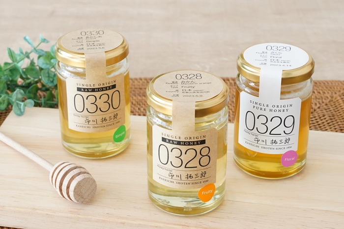 今回は、非加熱のローハニー(生蜂蜜)2種類を含む、関西の蜂蜜3種類が登場。和歌山のみかんと奈良のあかしあは、5月に採れた蜂蜜をローハニー(生蜂蜜)で採れたての味わいそのままに瓶詰めしました。奈良のさくら蜂蜜も華やかな香りが特徴の春らしい蜂蜜です。直営店の蜂蜜専門店「ミールミィ三条本店」や「ミールミィオンラインショップ」で販売予定。