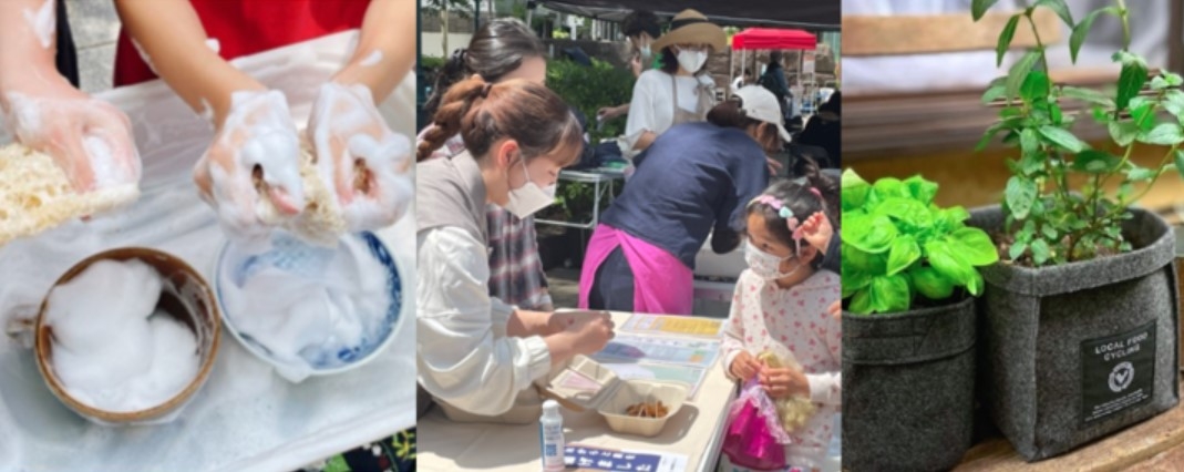 中央区の主婦らが参加する「エコフレ月島」では、脱炭素やマイクロプラスチック問題の解決策として注目を集めている、ヘチマスポンジ作り無料体験ブースを展開。